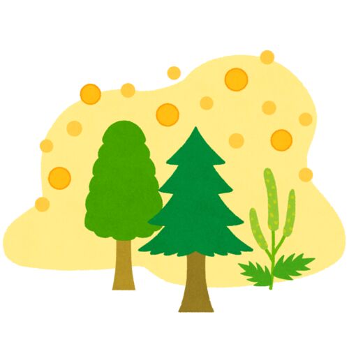 杉・ヒノキ・ブタクサなどの花粉が飛んでいるイメージのフリーイラスト素材です。