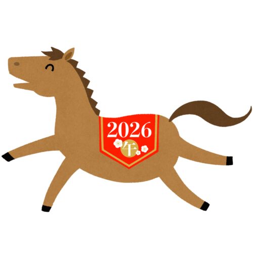 2026年の干支の馬が元気に走っているお正月向けイラストです。